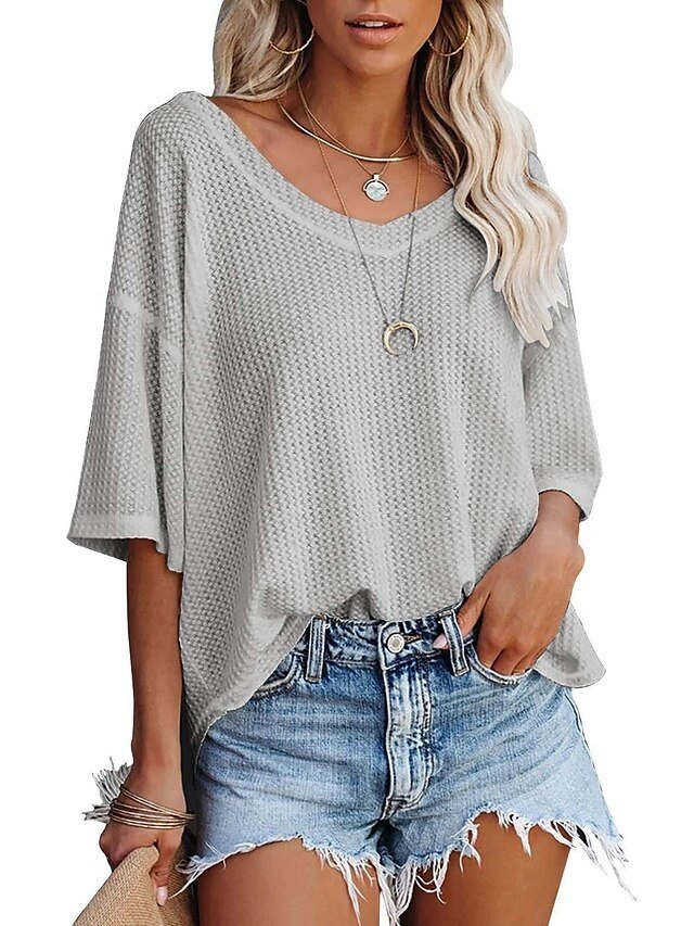 Discover the perfect blend of style and comfort with our Summer Loose Solid V Neck Short Top. Ideal for casual elegance in warm weather.