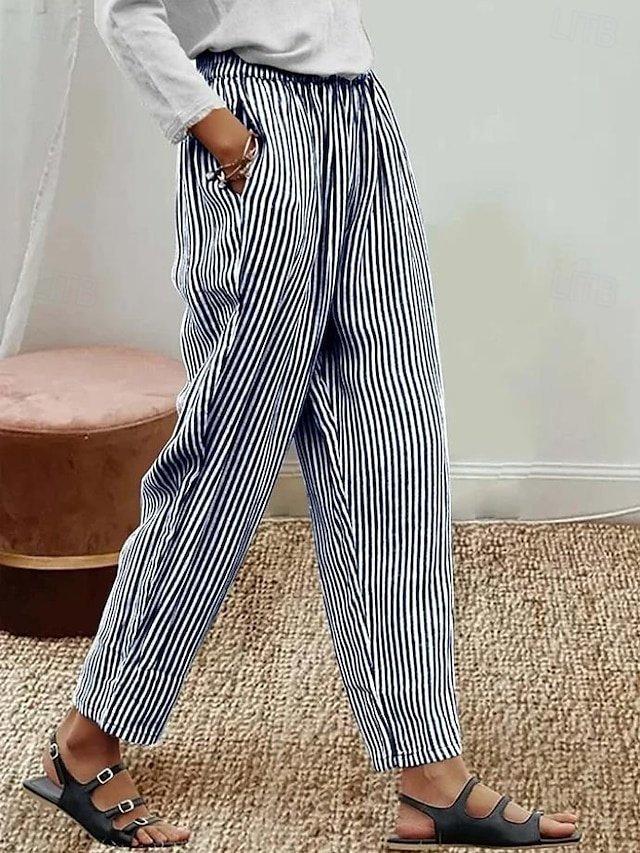 Discover vintage charm and comfort with these striped high waist pants, perfect for your next stylish getaway. Shop the look now!