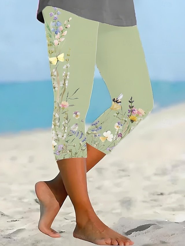 Embrace elegance with Vacation Casual Capri Floral Mid Waist Leggings. Perfect blend of style and comfort for every fashionista.