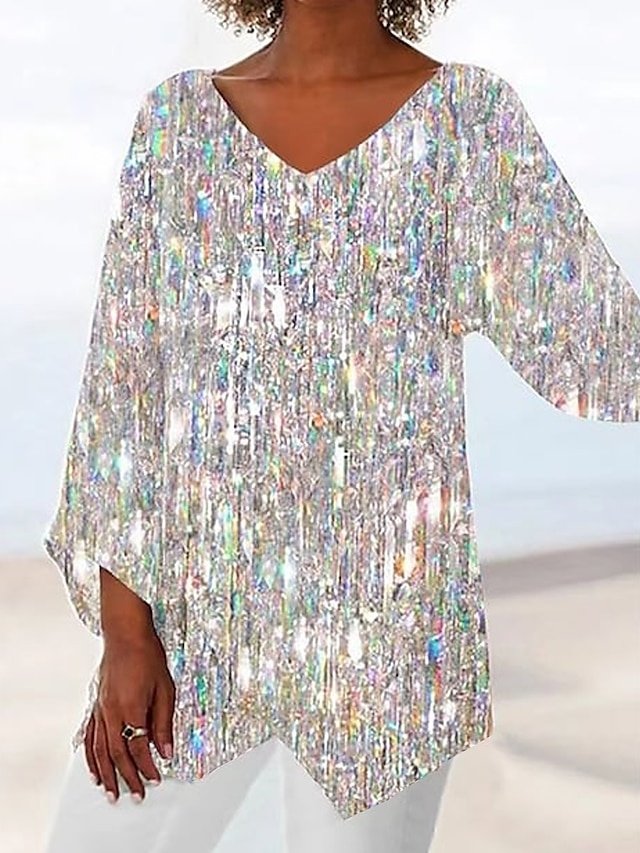 Discover elegance with our Vacation Casual Print V Neck Long Sleeve Top – perfect for holidays and chic streetwear in spring and fall.