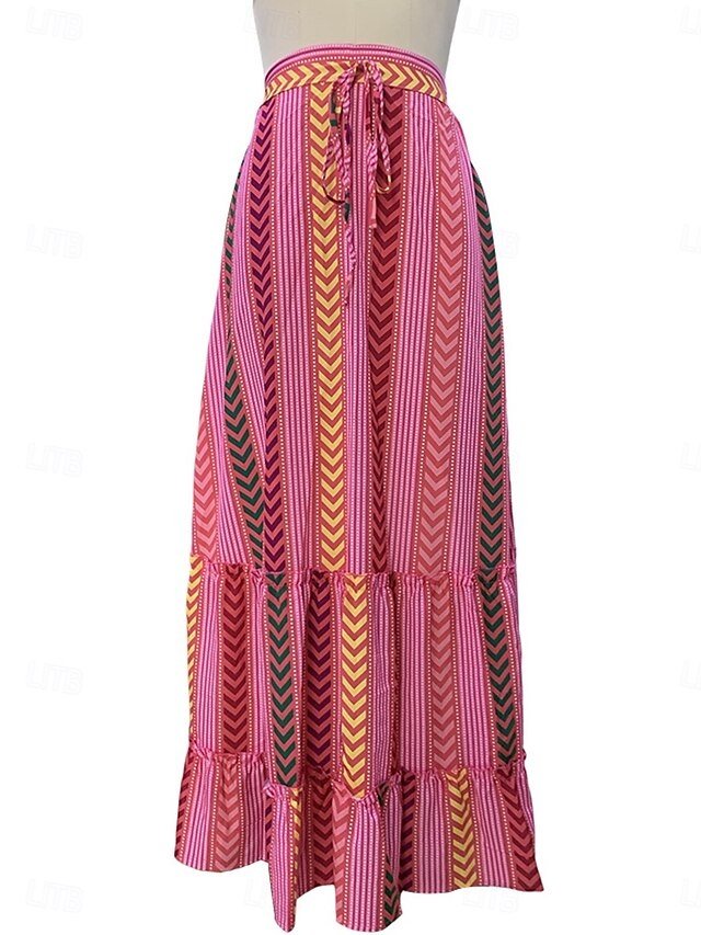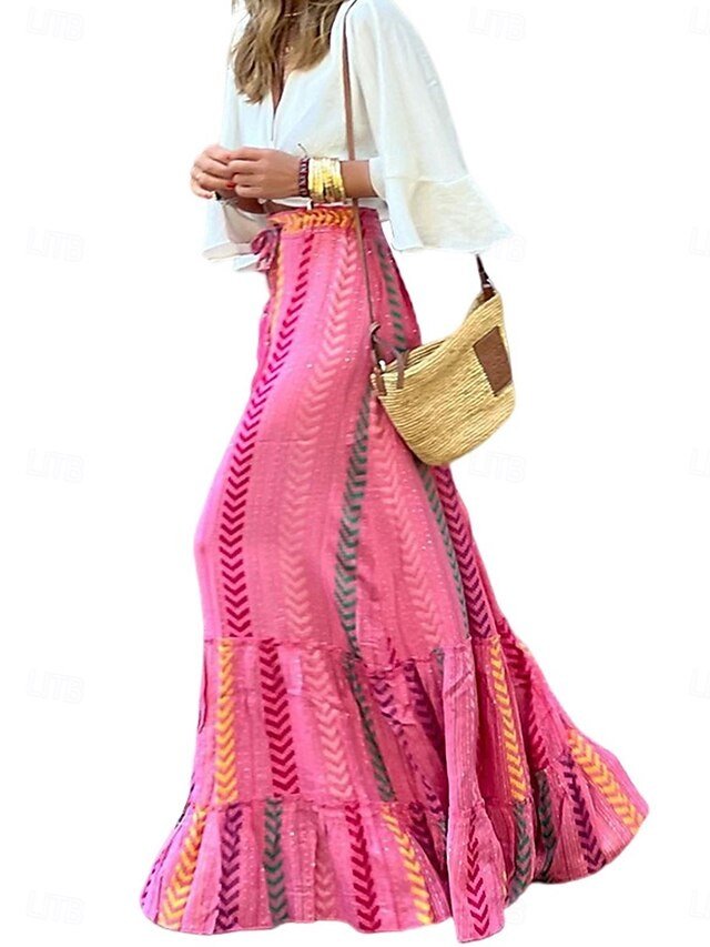 Discover bohemian elegance with our Vacation Loose Graphic Maxi Skirt. Perfect for summer, featuring a high waist and vibrant design.