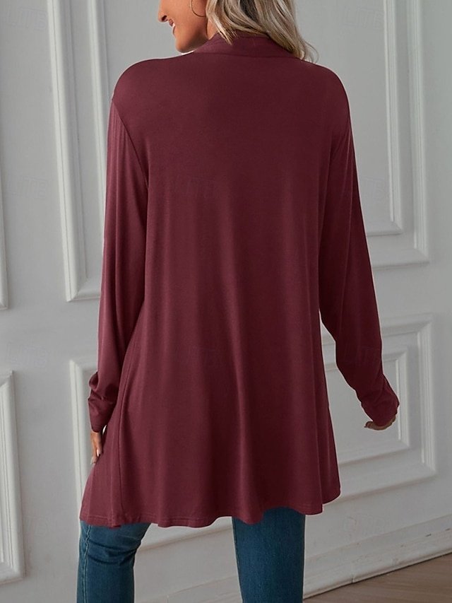 Vacation Regular Fit Solid Open Front Long Sleeve Cardigan