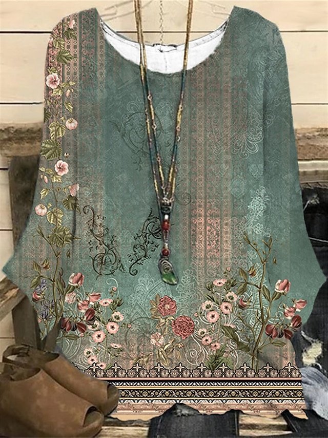 Discover timeless elegance with our floral crew neck blouse. Perfect for any occasion. Available in plus sizes and various colours.
