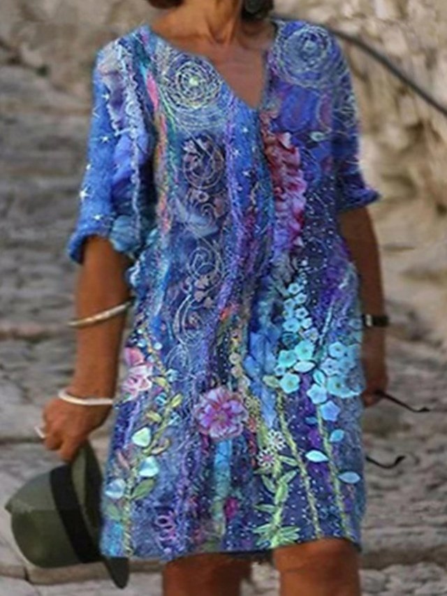 Step into elegance and grace with our Vintage Plus Size Floral V Neck Half Sleeve Knee Length Dress, a true celebration of timeless beauty and sophisticated style. Perfect for both work and casual occasions, this dress is your go-to ensemble for making a chic statement.