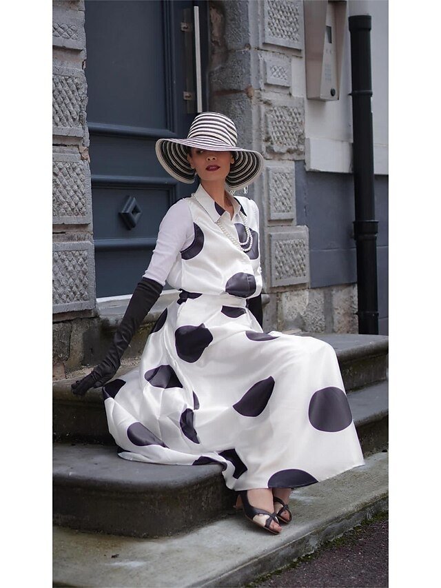 Discover timeless elegance with our Vintage Polka Dot Satin Maxi Dress, perfect for a chic spring or summer getaway. Shop now for sophisticated style.