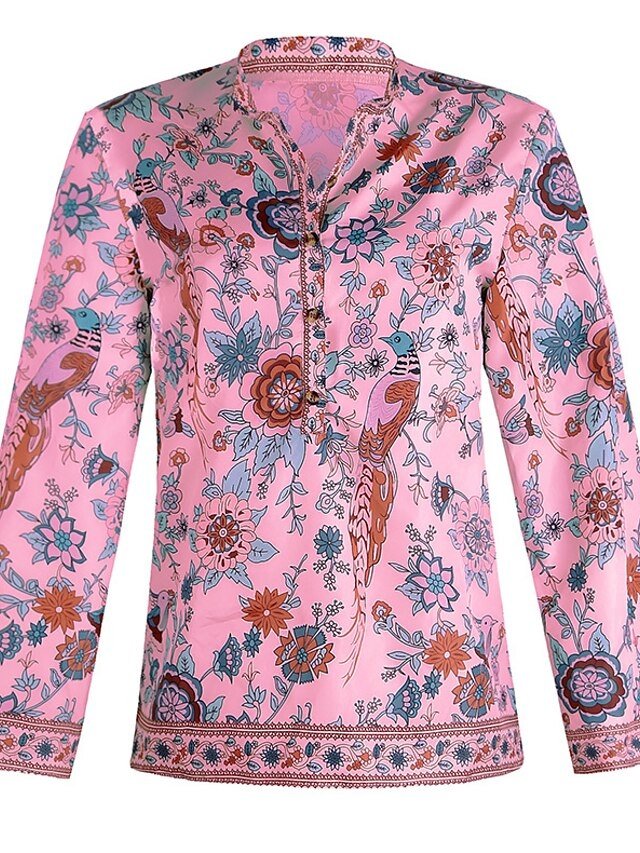 Discover elegance with our Vintage Boho Blouse featuring a graphic floral print, perfect for daily wear or holidays. Available in UK sizes 2-20.