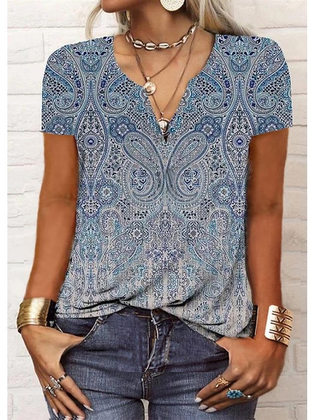 Embrace the timeless allure of vintage style with our exquisite Vintage Regular Paisley V Neck Short Sleeve Henley Shirt. Whether you’re stepping out for a casual day with friends or a relaxed weekend getaway, this top is designed to make you feel effortlessly chic and sophisticated.