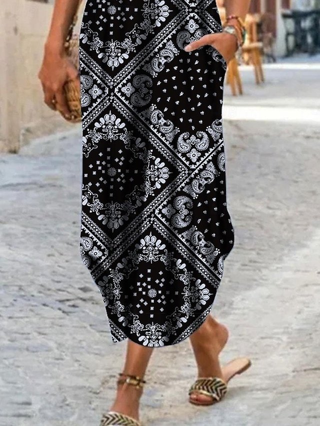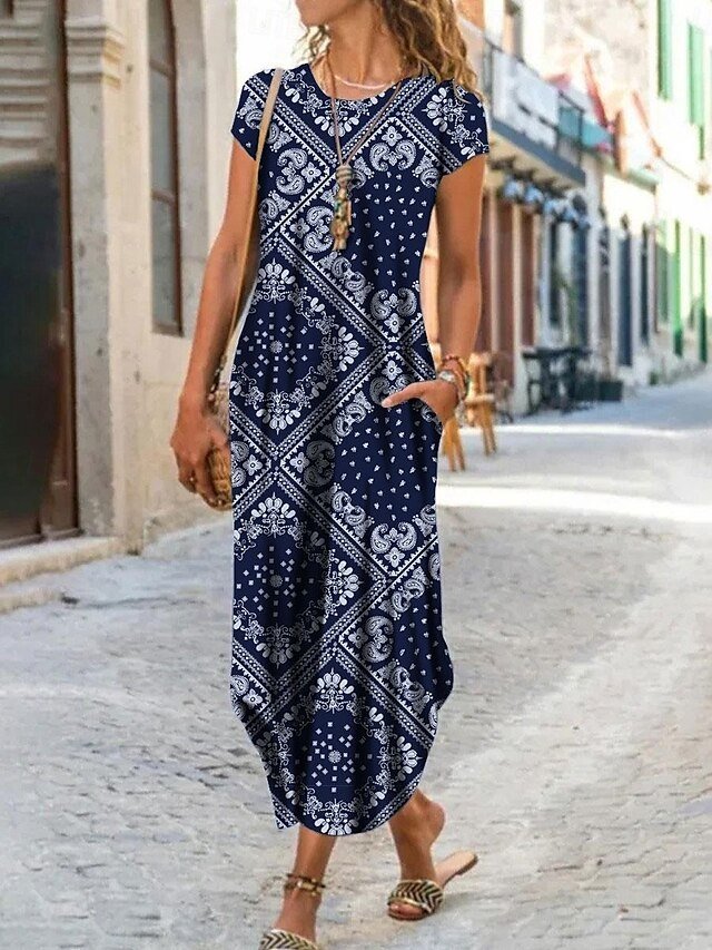 Elevate your wardrobe with this Vintage Geometric Maxi Dress. Perfect for spring and summer with a chic colour block design and comfortable fit.